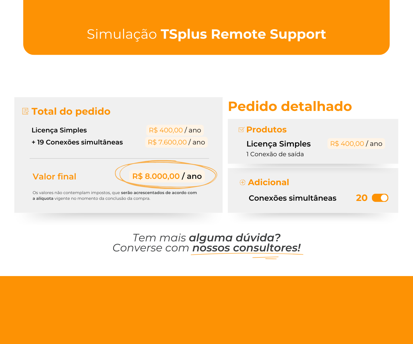 Absolutamente! Trabalhamos com mais de 5.000 parceiros de negócios em todo o mundo. Se você tem clientes interessados no TSplus Remote Support, entre em contato com nossa equipe de vendas. Recomendamos que você faça o download da versão de teste gratuita primeiro para confirmar que nossa solução atende às necessidades dos seus clientes.